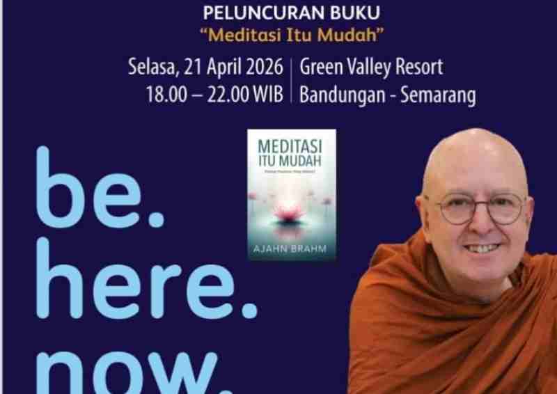 SEMARANG — Kegiatan reflektif bertajuk talk show dan peluncuran buku “Meditasi Itu Mudah” akan menghadirkan tokoh spiritual dunia, Ajahn Brahm, pada Selasa, 21 April 2026. Acara ini diselenggarakan oleh Ehipassiko Foundation bersama Yayasan Cancer Care dalam rangka menghadirkan ruang ketenangan batin bagi masyarakat luas.
