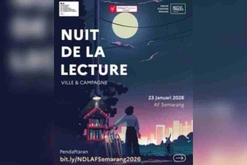 Semarang — Alliance Française (AF) Semarang kembali menggelar kegiatan literasi bertaraf nasional yang dihelat Kedutaan Prancis di Indonesia bertajuk La Nuit de la Lecture atau Malam Membaca, Jumat (23/1/2026). Bekerja sama dengan komunitas Read Aloud Semarang, kegiatan ini mengangkat tema “Ville & Campagne” (Kota dan Desa) dan terbuka untuk masyarakat umum, khususnya pencinta buku, sastra, dan sejarah.