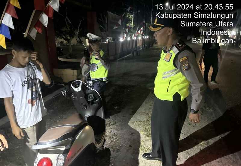Sumaterapost.co – Simalungun | Polsek Tanah Jawa, di bawah pimpinan Kapolsek KOMPOL Asmon Bufitra, SH., M.H., menggelar razia pada hari Minggu, 14 Juli 2024, untuk mengantisipasi masuknya peredaran narkoba dan gangguan ketertiban masyarakat (kamtibmas) di malam hari. Razia ini dilaksanakan di jalan umum Kecamatan Tanah Jawa sekitar pukul 01.00 WIB.
