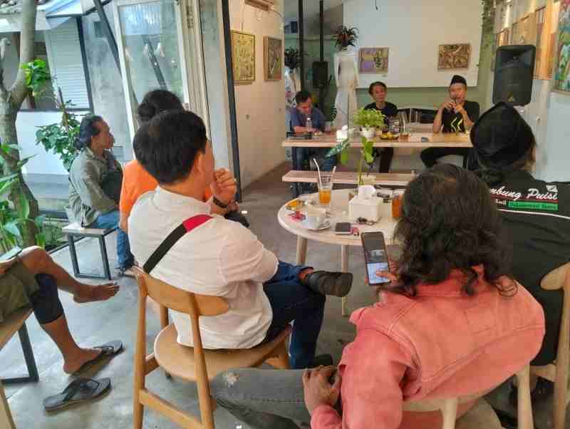 Dari Yogyakarta ikut nimbrung dalam diskusi pelukis Eko Rahmy. Kehadiran mereka memperkaya dialog yang berlangsung hangat dan terbuka.