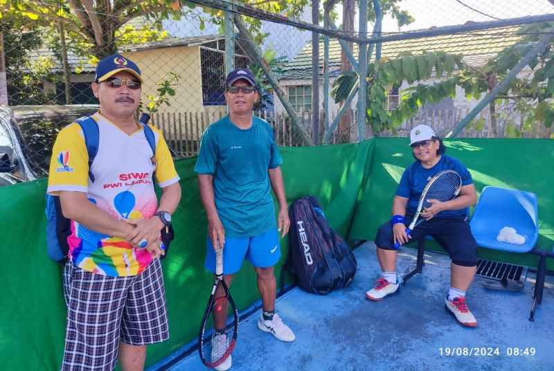 Diketahui, SIWO PWI Lampung mengirimkan lima squad untuk cabang olahraga Tenis Lapangan dipimpin official Edi Sunarso dengan empat atlet tangguh lain seperti Roniansyah, H Jimin, Daniel dan Suprayogi.