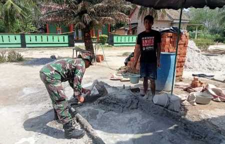 Dalam Kegiatan tersebut terlihat Babinsa juga ringan tangan membantu warga binaannya yang sedang membangun rumah, dengan mebuat adukan semen, mengangkat kayu dan asbes.