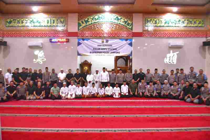 Lampung – Bid Propam Polda Lampung menggelar kegiatan doa bersama malam Nisfu Sya’ban di Masjid Al-Ikhlas Polda Lampung. Doa bersama ini juga turut dilaksanakan serentak oleh Polres/Ta Jajaran Polda Lampung. Kamis (13/2/2025)
