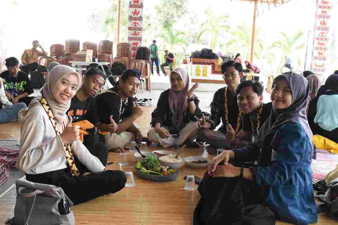 BANDARLAMPUNG – Suasana seru terjadi ketika mahasiswa Pertukaran Mahasiswa Merdeka (PMM) 3 Institut Informatika dan Bisnis (IIB) Darmajaya dikenalkan masakan khas Lampung dengan tradisi nyeruit, di Aula Bumi Kedaton Resort, Sabtu (30/9/23).