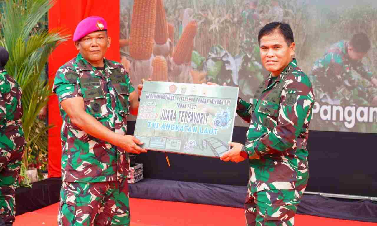 Bekasi – TNI-AL, Korps Marinir, Brigif 4 Mar/BS (Bekasi). Brigade Infanteri 4 Marinir/BS menerima piagam penghargaan dan piala pemenang Favorit TNI AL lomba video pendek Gerakan Nasional Ketahanan Pangan Jajaran TNI tahun 2023 bertempat di Ds. Wanajaya, Kec. Cibitung, Kab. Bekasi, Jawa Barat. Rabu (01/11/2023).