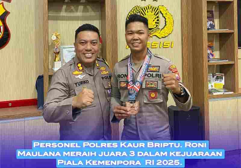 ” Briptu Roni Maulana adalah personil Polres Kaur yang ikut dalam kejuaraan tersebut.sambung Rofiqun, “Dia adalah satu- satunya perwakilan dari Polres Kaur dan berhasil meraih juara III dengan memperoleh Medali Perunggu.”