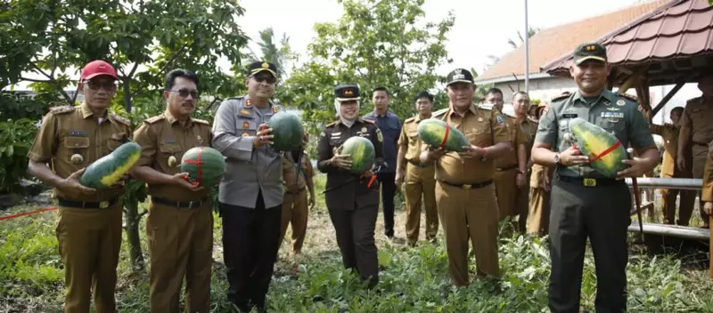 Sumaterapost.co – Bupati Lampung Selatan H. Nanang Ermanto bersama Forum Koordinasi Pimpinan Daerah (Forkopimda) Lampung Selatan menanam bawang sekaligus panen semangka di Kebun Edukasi, Kalianda, pada Selasa, (12/9/2023).