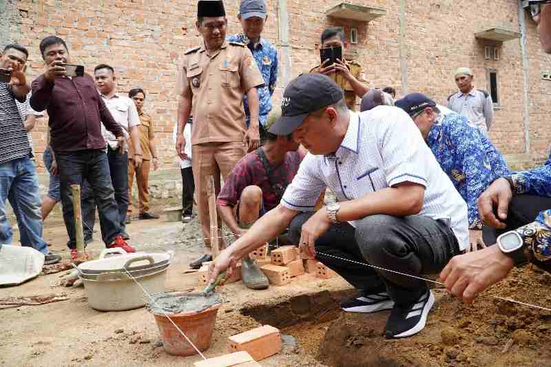 Sebagai bentuk komitmen terhadap pemulihan pasca musibah, usai menyerahkan bantuan, Bupati Novriwan Jaya juga secara simbolis melakukan peletakan batu pertama pada pondasi pembangunan kembali rumah milik Eko Sahri.