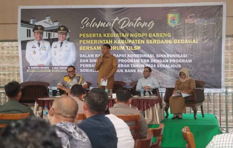 Sumaterapost.co – Sergai | Bupati Serdang Bedagai (Sergai), Darma Wijaya, bersama Forum Tanggung Jawab Sosial Lingkungan Perusahaan (TJSLP) menggelar rapat koordinasi untuk menyinkronkan program Corporate Social Responsibility (CSR) dengan pembangunan daerah tahun 2024 di Cafe Jerico Stable, Sei Rampah, Selasa (16/7).