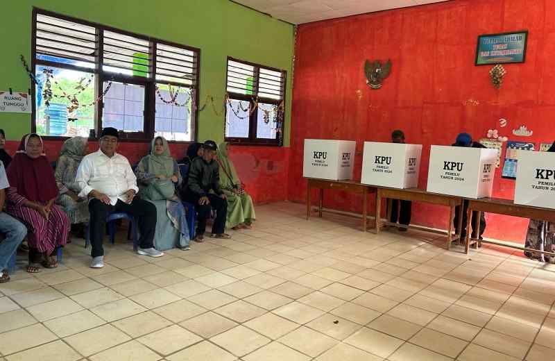 “Saya Bustami Zainudin, selaku pimpinan komite DPD RI, yang juga jadi peserta pemilu 2024, hari ini saya melaksanakan Pemilu di TPS 6, Desa Blambangan Umpu, Way Kanan, depan rumah,” ungkap Senator Bustami.
