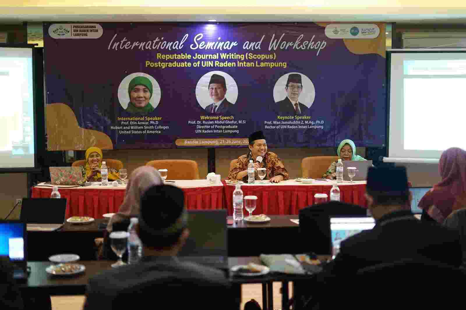 Bandar Lampung – Dalam rangka mendorong percepatan lahirnya guru besar dengan tulisan jurnal bereputasi, Pascasarjana UIN Raden Intan Lampung menggelar International Seminar and Workshop Reputable Journal Writing (Scopus).