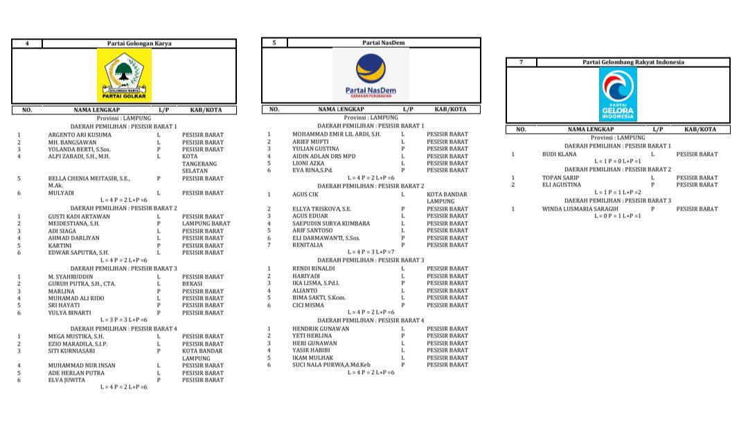 Hal ini berdasarkan Surat Pengumuman resmi Nomor: 458/ PL.01.5-Pu/1883/2023 tentang Daftar Calon Tetap Anggota Dewan Perwakilan Rakyat Kabupaten Pesisir Barat Dalam Pemilihan Umum Tahun 2024.