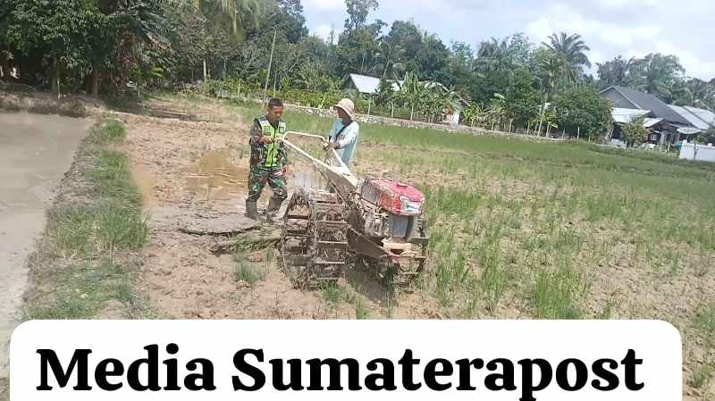 Aceh Tamiang | Sumaterapost – Babinsa Koramil 02/Karang Baru Sertu Arif Gunawan mendampingi petani membajak sawah milik petani desa binaannya di Air Tenang, Kecamatan Karang Baru, Kabupaten Aceh Tamiang. Sabtu (13/07/2024)
