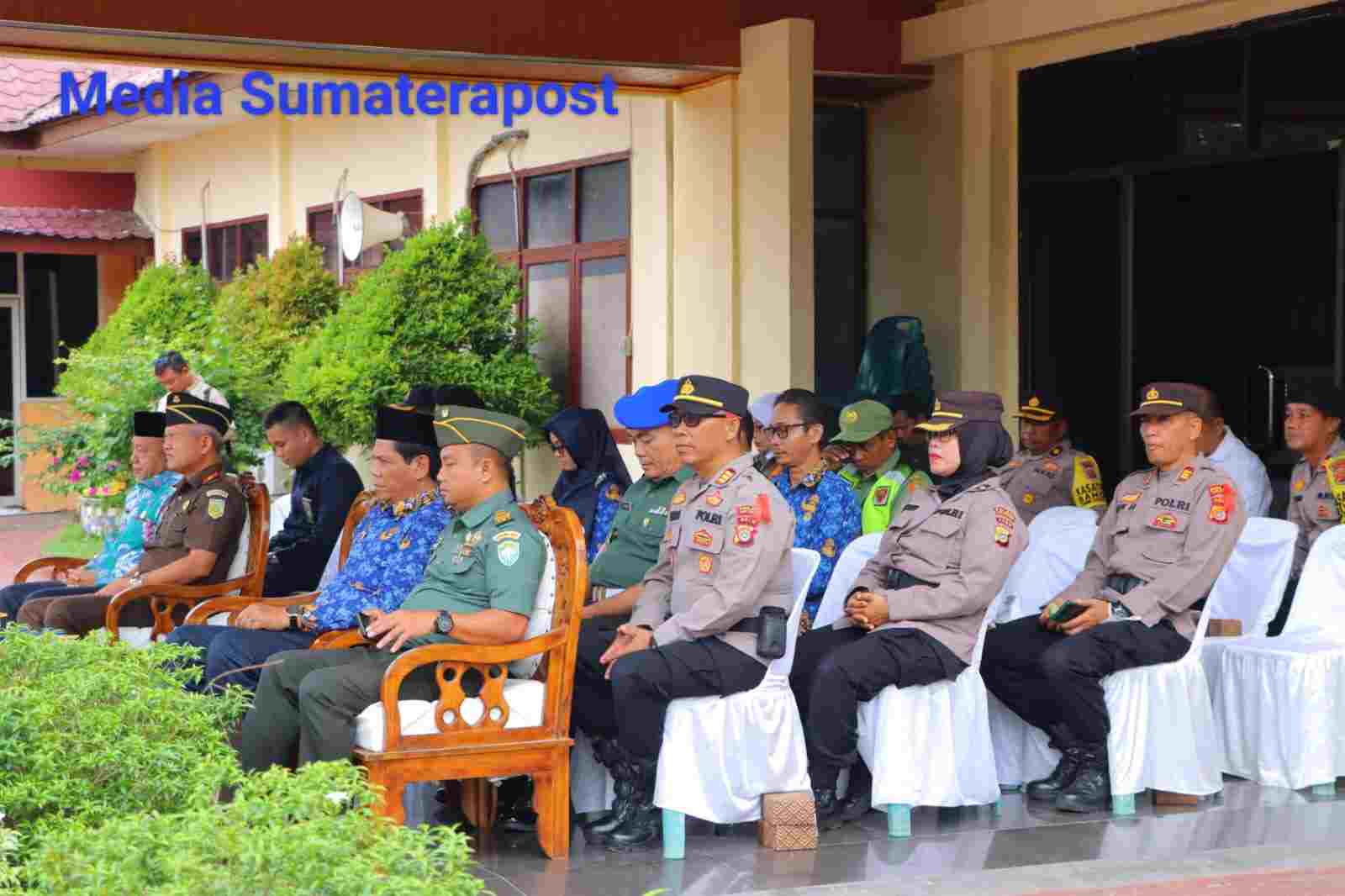Aceh Tamiang – Sumaterapost | Dandim 0117/Aceh Tamiang Letkol Czi Alfian Rachmad Purnamasidi, S.I.P. M.si., yang di wakili oleh pasi Intel Kodim 0117/Aceh Tamiang Kapten Inf Surono Patra mengikuti Apel Gelar Pasukan Operasi Mantap Brata Seulawah 2023-2024 di lapangan Parama Satwika Mapolres Aceh Tamiang, Selasa (17/10/2023).