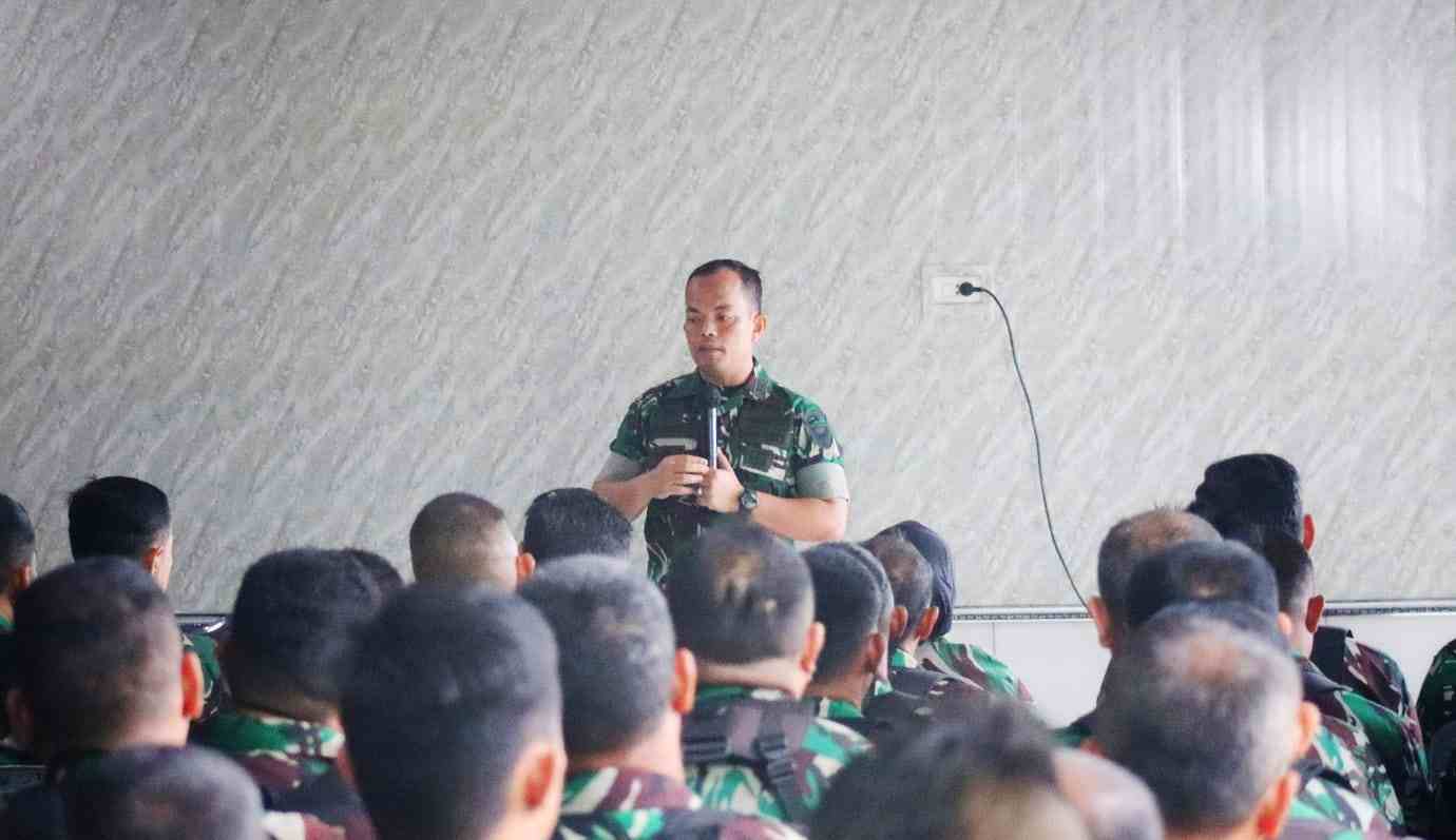 BANDAR LAMPUNG — Komandan Kodim (Dandim) 0410 Kota Bandar Lampung Letkol Arm Tri Arto Subagio M.Int.Rel.,M.M.D.S, memberikan pengarahan (Jam Komandan) kepada Prajurit dan PNS di markas Kodim setempat, Senin (27/2)