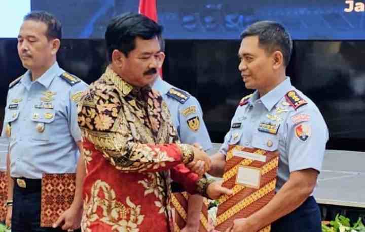 SumateraPost.co/ Jakarta – Lanud BNY (SIN) Komandan Pangkalan TNI AU Pangeran M. Bun Yamin (Danlanud BNY) Letkol Pnb Yosi Hadi Wiyanto menerima Pin Emas dari Kementerian Agraria dan Tata Ruang/Badan Pertanahan Nasional Republik Indonesia.