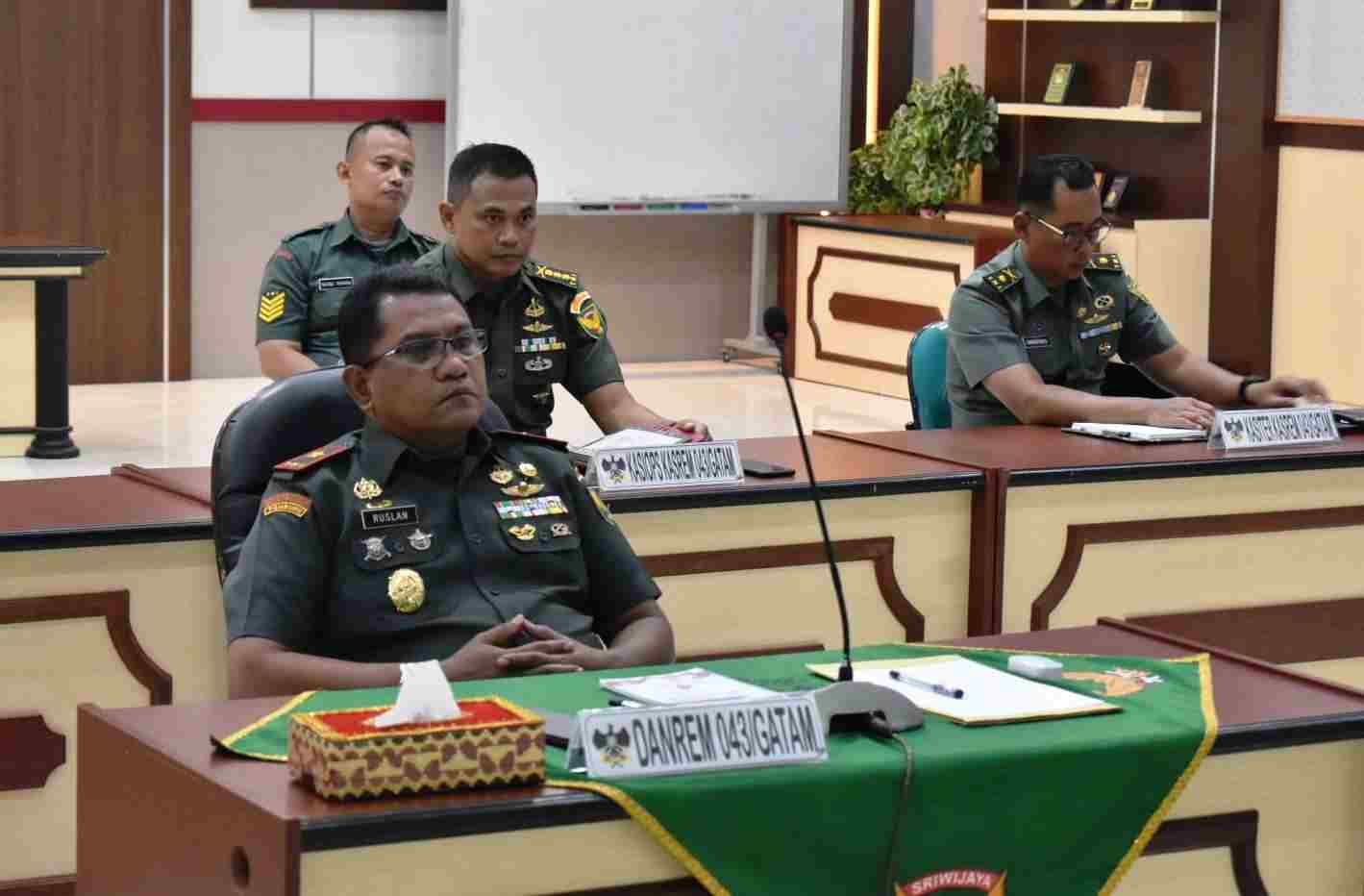 Rapat penyusunan Rentikon Kodam II/Swj Tahun 2024 dipimpin Pangdam II/Swj Mayjen TNI Hilman Hadi S.I.P, M.BA, M.Han, dilaksanakan secara virtual, juga dihadiri pejabat Korem 043/Gatam diantaranya, Kasi Renprogar Rem 043/Gatam Kolonel Inf Bambang Semiana, Kasiops Kasrem Kolonel Inf Gede Setiawan, Pasiter Korem 043/Gatam Mayor Inf Sabariyanto, dan Pasi Lidpam Korem 043/Gatam Kapten Inf Asten Asterius Simamarta.