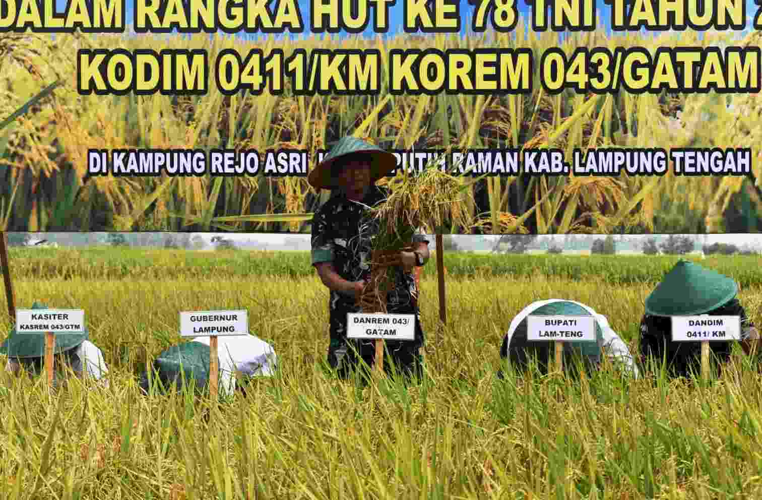 Bertempat di Dusun III RT 14 Kp. Rejo Asri Kecamatan Seputih Raman Kabupaten Lampung Tengah, rabu (1/11/), Komandan Korem 043/Gatam Brigjen TNI Iwan Ma’ruf Zainudin S.E, didampingi Kasiter Kasrem 043/Gatam Kolonel Inf. Jaka Sutanta, S.Sos, mengikuti panen raya dalam rangka gerakan nasional ketahanan pangan jajaran TNI Tahun 2023 bersama bapak Wakil Presiden RI secara virtual, yang bertemakan Ketahanan Pangan Untuk Indonesia Maju.