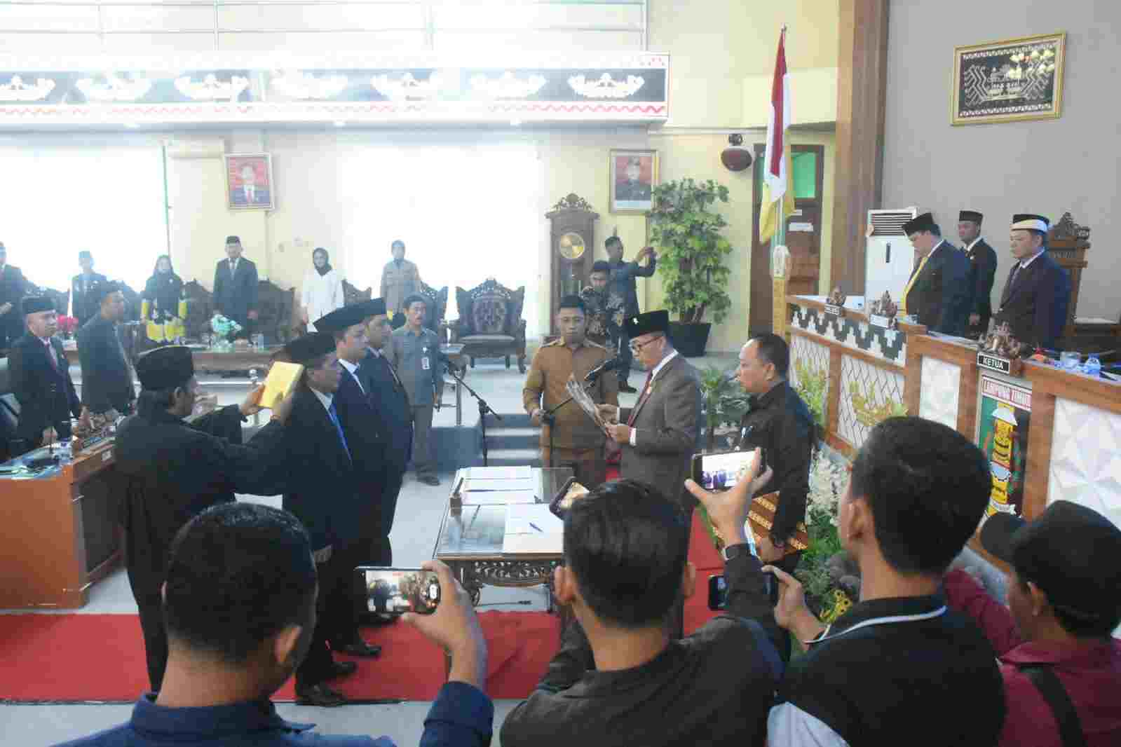 LAMPUNG TIMUR – Bupati Lampung Timur M. Dawam Rahardjo Hadir Dalam Rapat Paripurna DPRD Kabupaten Lampung Timur Dalam Acara Peresmian Pemberhentian Anggota DPRD dan Pengambilan Sumpah / Janji Pengganti Antar Waktu Sisa Masa Jabatan 2019-2024 di Ruang Sidang DPRD Kabupaten Lampung Timur, Jumat (28 Juli 2023)