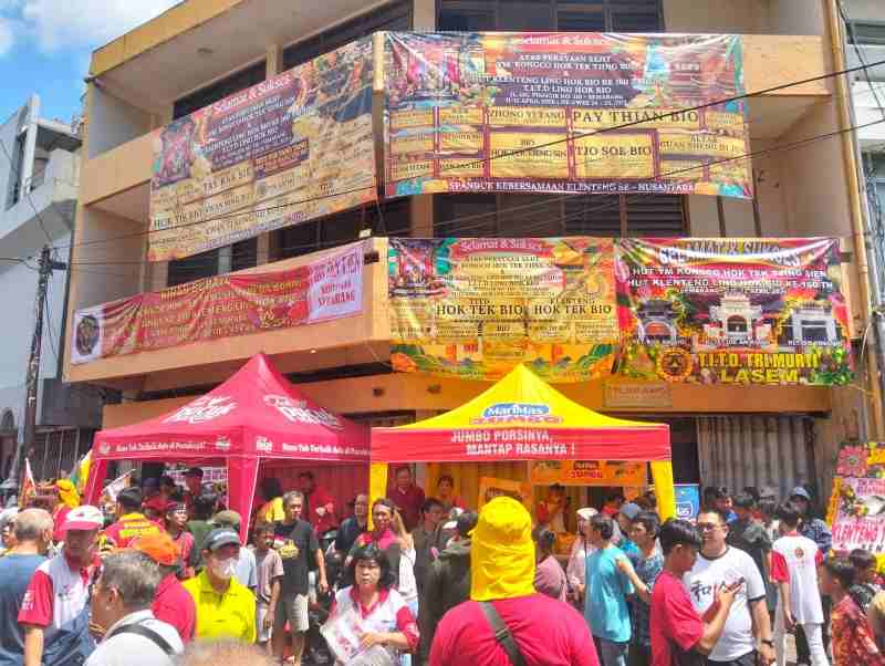 Barisan nama itu lantas memanjang, menembus batas geografis. Menuju Kebayoran, menyeberang ke Bogor, melipir ke Cirebon, naik ke Kudus, menyusuri lorong-lorong sempit Lasem yang legendaris, hingga jauh ke ujung timur di Banyuwangi. Bahkan dari Denpasar, Cao Fuk Miao ikut mengirimkan sapaannya. Jarak ratusan kilometer yang selama ini membentang di atas aspal dan peta digital, tiba-tiba mengerut. Ia dipadatkan, diremukkan, lalu disusun kembali dalam satu bentang kain yang berkibar di depan Klenteng Ling Hok Bio.