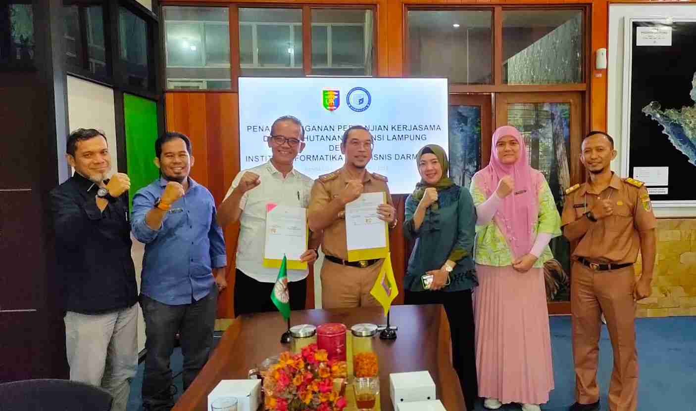 Penandatanganan dilakukan Wakil Rektor 2 IIB Darmajaya Ronny Nazar, S.E., M.M., mewakili Rektor Dr. Ir. H. Firmansyah Y. Alfian, MBA., M.Sc, dan Kadishut Provinsi Lampung Ir. Y. Ruchyansyah, M.Si.“Saat ini, ada 13 hutan wisata di Lampung yang dapat digarap sebagai lokasi penelitian dan pengabdian, PKPM, magang oleh dosen dan mahasiswa IIB Darmajaya,” kata Ruchyansyah, usai penandatanganan nota kerjasasama di ruang kerjanya.