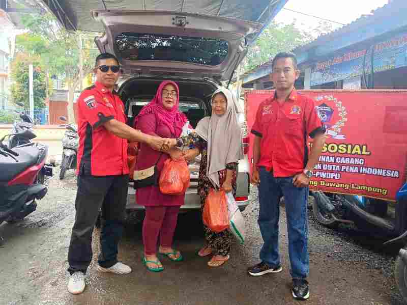 Sumaterapost.co | Tulang Bawang – Dewan Pimpinan Cabang (DPC) PWDPI Persatuan wartawan Duta Pena Indonesia Kabupaten Tulang Bawang, Provinsi Lampung Menggelar kegiatan Bakti Sosial dengan membagikan sembako kepada masyarakat Menggala yang kurang mampu.10/01/2025