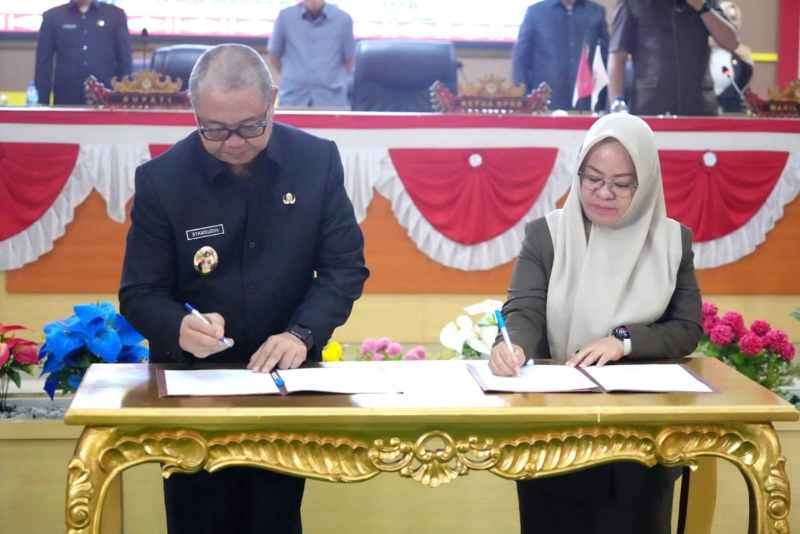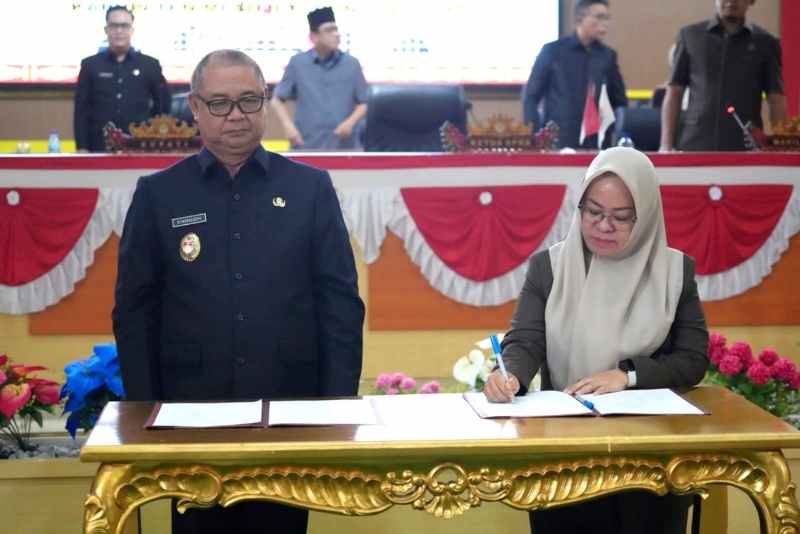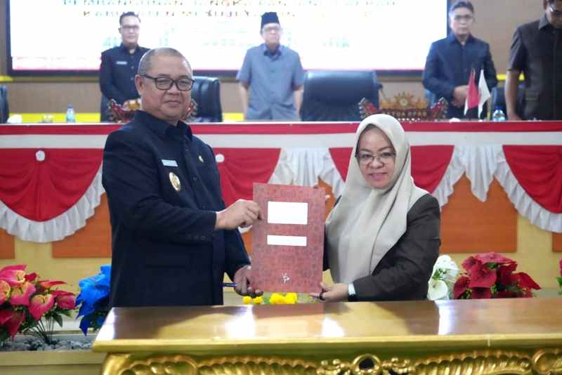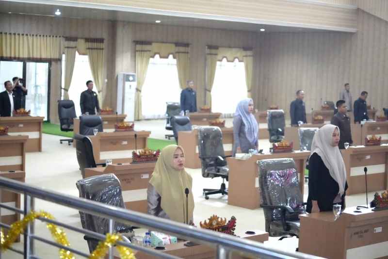 Mesuji – Dewan Perwakilan Rakyat (DPRD) Kabupaten Mesuji menggelar Rapat Paripurna pembicaraan tingkat II Penandatangan Persetujuan Bersama Ranperda Tentang Rencana Pembangunan Jangka Panjang Daerah Tahun 2025 – 2045 di Ruang Rapat Paripurna Lantai II Gedung DPRD Wiralaga mulya, Kecamatan mesuji, Senin (29/07/2024).