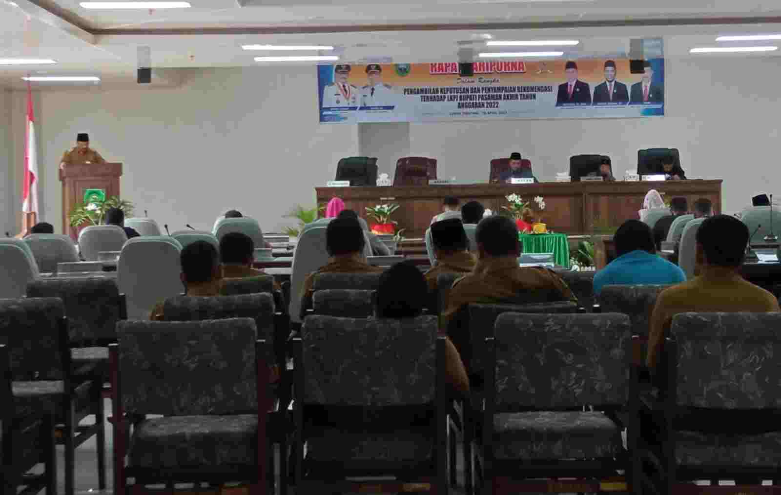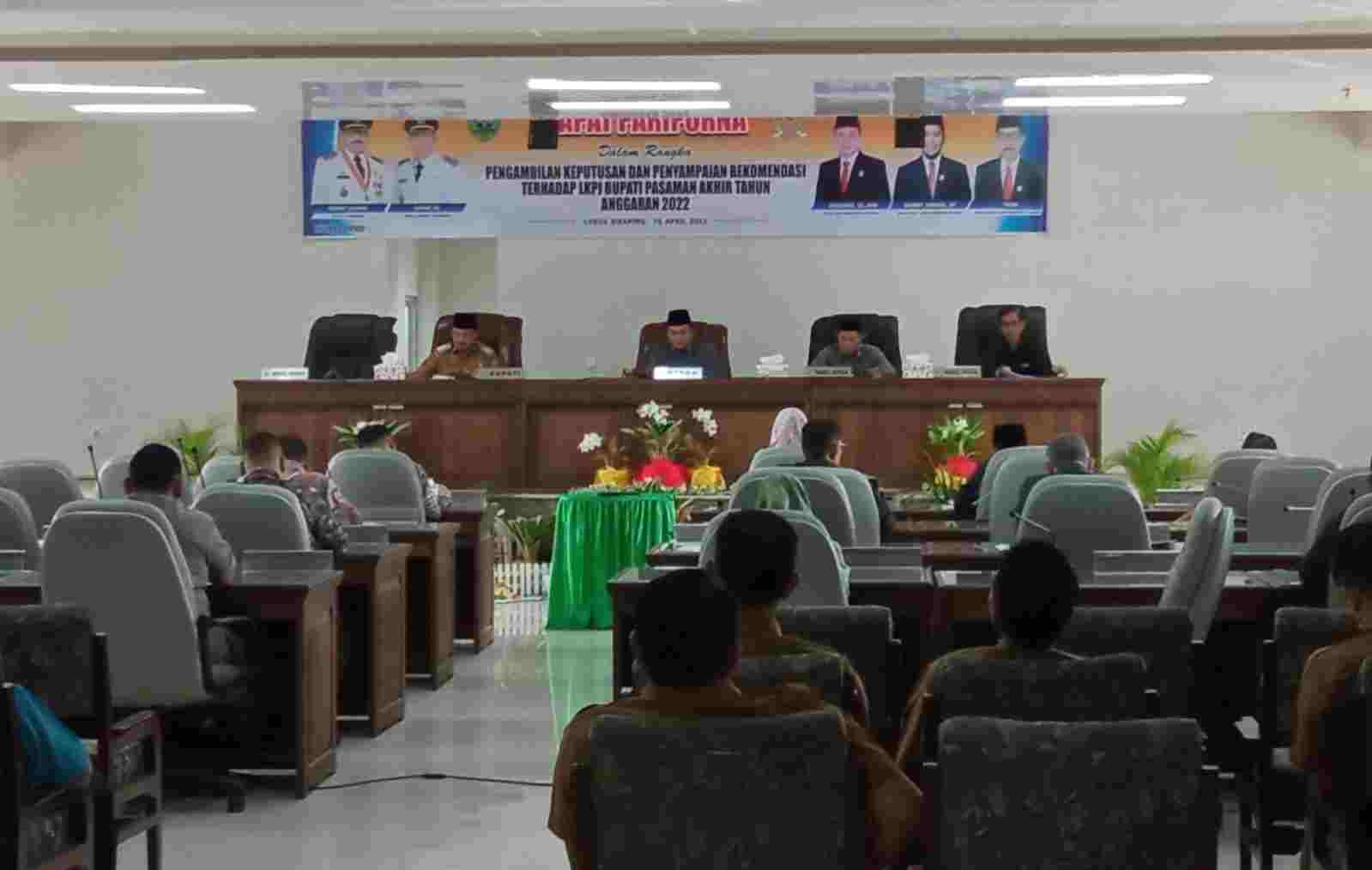 Pasaman | Sumaterapost.co – Dewan Perwakilan Rakyat Daerah (DPRD) kabupaten Pasaman mengelar rapat sidang paripurna dalam rangka penyampaian jawaban Bupati Pasaman atas pemandangan – pemandangan fraksi dan pengambilan keputusan sekaligus penyampaian rekomendasi terhadap LKPJ Bupati Pasaman Tahun Anggaran 2022 di ruang rapat DPRD Kabupaten Pasaman, Senin 10 April 2023.