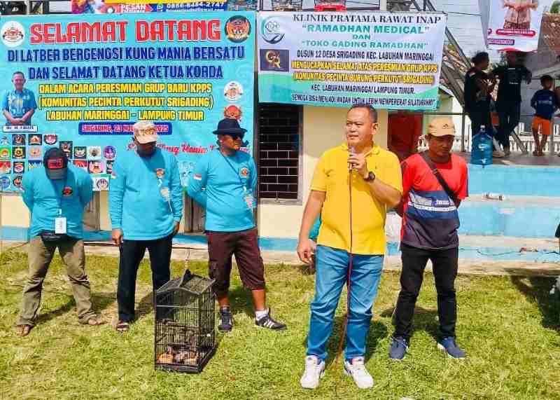 Sumaterapost.co | Lampung Timur – Dr. Fauzi Ketua Umum Korda Paguyuban Pelestari dan Pecinta Perkutut Lokal Seluruh Indonesia (P4LSI) Provinsi Lampung meresmikan kepengurusan Korcab Komunitas Pecinta Perkutut Srigading (KPPS) Lampung Timur di Desa Srigading kecamatan Labuhan Maringgai Kabupaten Lampung Timur, Minggu, (23/11/2025).