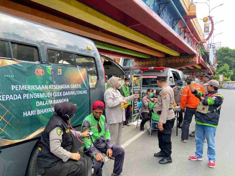 Kegiatan ini merupakan bagian dari rangkaian Bakti Kesehatan Polri sebagai bentuk kepedulian Polri terhadap kesehatan masyarakat, khususnya kelompok pekerja sektor informal seperti driver ojol.