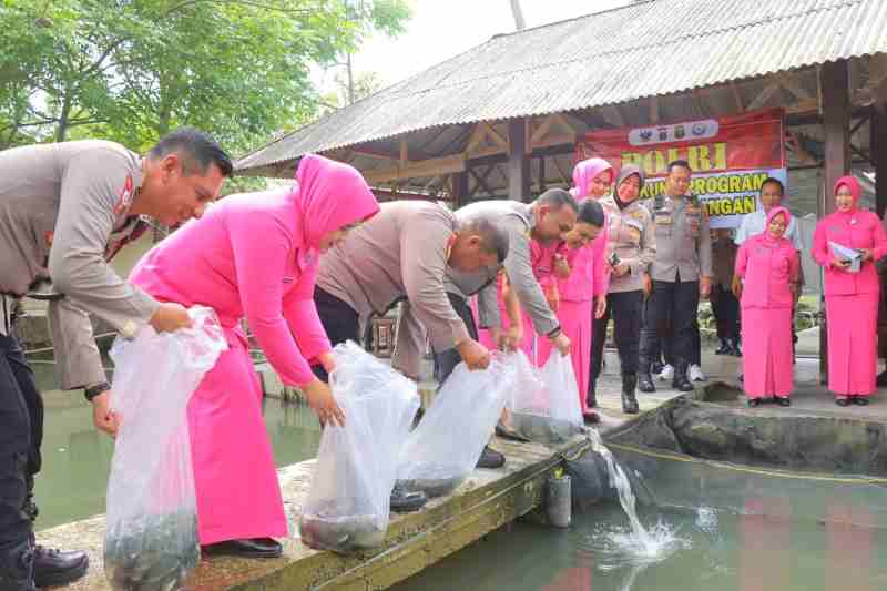 Ribuan benih ikan ditebar langsung Kapolresta Bandar Lampung, Kombes Pol Alfret Jacob Tilukay, didampingi Waka Polresta Bandar Lampung, AKBP Erwin Irawan beserta Kepengurusan Bhayangkari Cabang Kota Bandar Lampung.