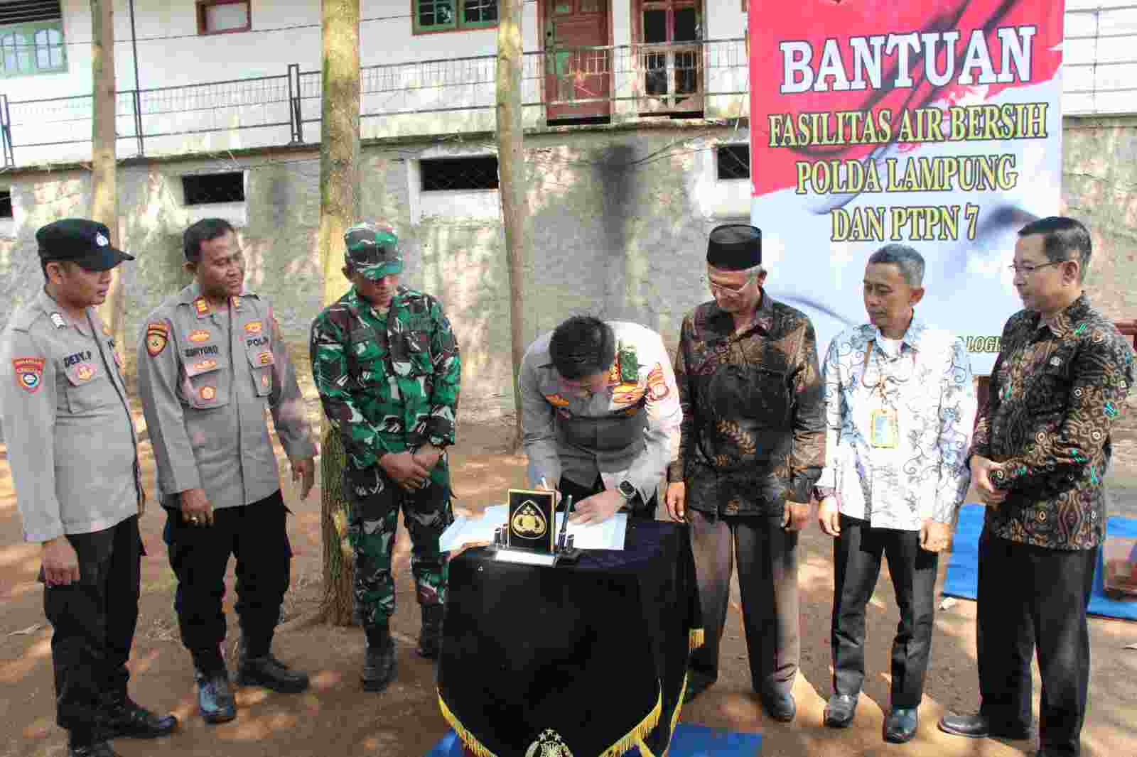 Bantuan fasilitas air bersih berupa sumur bos lengkap dengan tandon air dan jaringan listrik merupakan partisipasi PTPN VII dalam rangka HUT ke 77 Korps Bhayangkara. Dalam sambutannya mewakili Board of Management PTPN VII, Andi Firmansyah mengatakan, pihaknya mengakomodasi prakarsa Polda Lampung yang mengisi momen ulang tahun Polri dengan agenda sosial sangat produktif.