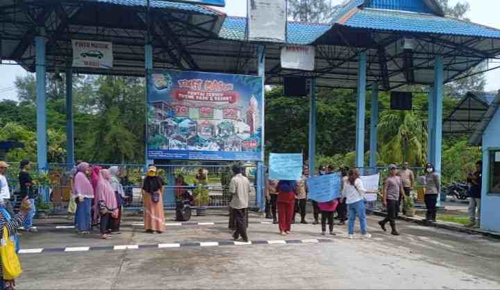 SERGAI, SumateraPost.co – Pedagang food court Kawasan Wisata Pantai Cermin (KWPC) didampingi Format Satu PC (Forum Masyarakat Bersatu Pantai Cermin), gelar aksi damai di pintu gerbang PT. KWPC di Dusun I Desa Pantai Cermin Kanan, kecamatan Pantai Cermin, Minggu (24/9/2023).