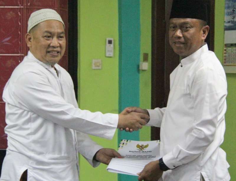 Usai Salat Tarawih, Walikota Jaksel, Munjirin menyerahkan secara simbolis bantuan dari Baznas Bazis Jaksel kepada pengurus Masjid Al Muttaqien.
