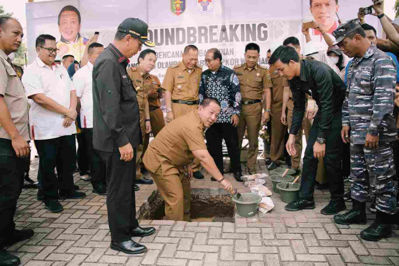 BANDARLAMPUNG – Gubernur Lampung Arinal Djunaidi bersama Staf Ahli Bidang Hukum Olahraga Kementerian Pemuda dan Olahraga (Kemenpora) Samsudin melakukan peletakan batu pertama (Groundbreaking) Pembangunan Gelanggang Olahraga (GOR) Saburai di Pusat Kebudayaan dan Olahraga (PKOR) Way Halim, Bandar Lampung, Senin (20/2/2023).