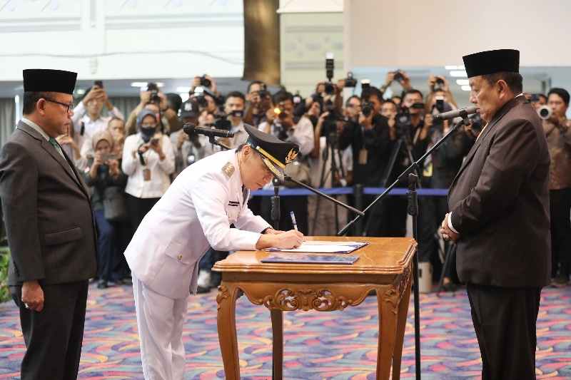 BANDARLAMPUNG – Gubernur Lampung Arinal Djunaidi melantik Kepala Dinas Energi dan Sumber Daya Mineral (ESDM) Provinsi Lampung Febrizal Levi Sukmana sebagai Penjabat (Pj) Bupati Mesuji.