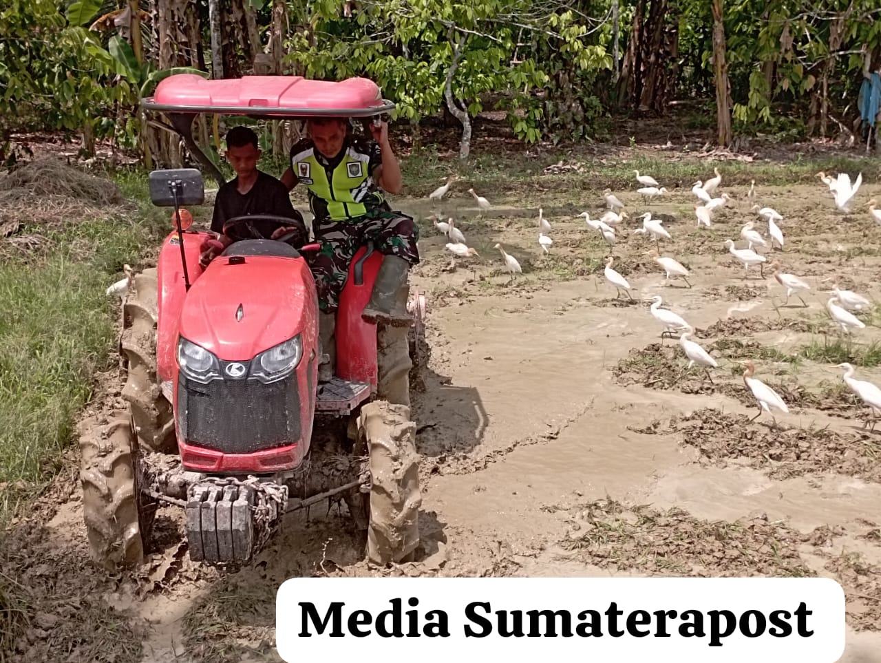 “Pengolahan lahan dengan menggunakan hentraktor adalah cara baru. Pengolahan lahan yang dapat membantu petani untuk menyuburkan tanah yang akan ditanami padi,” katanya.