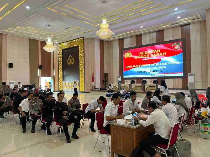 LAMPUNG – Memperingati Hari Jadi Fungsi Intelijen Polri ke-80 Tahun 2026, Direktorat Intelkam Polda Lampung menggelar aksi kemanusiaan berupa donor darah di Gedung Serba Guna Presisi Polda Lampung, Rabu (31/12/2025) pagi.