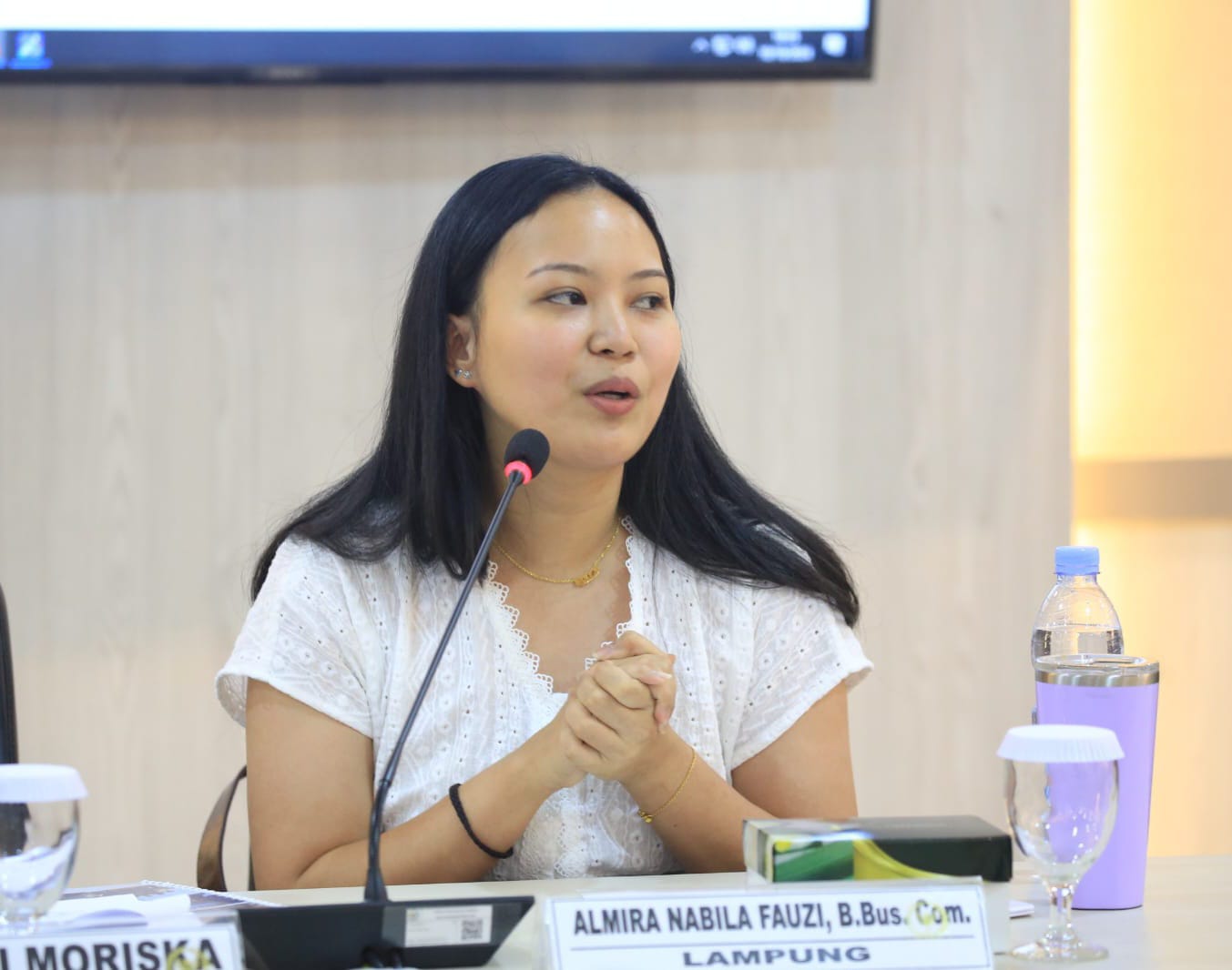 Almira Nabila Fauzi, salah satu senator dari Generasi Z asal Provinsi Lampung mengajak para pemuda untuk berpikir dan berrtindak positif dalam ikut serta membangun negeri, jangan tergoda dengan iming-iming tanpa bekerja dan terjebak dengan Pinjaman Online yang ilegal.