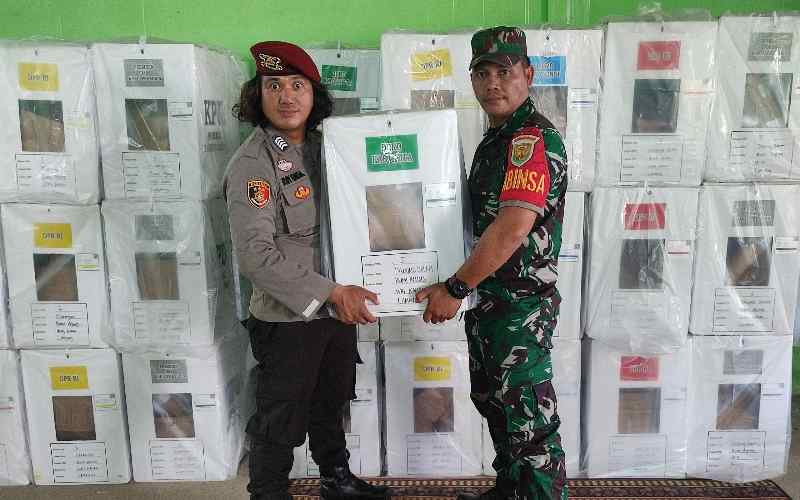 Way Kanan – Sumaterapost.co | Sinergitas yang erat antara Tentara Nasional Indonesia (TNI) dan Kepolisian Republik Indonesia (Polri) yang menjadi garis depan dalam menjaga keamanan pendistribusian kotak suara di Kabupaten Way Kanan, Kamis (15/02/2024).