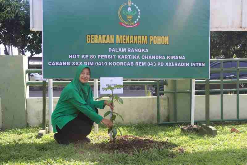 Bandar Lampung, 16 April 2026 – Dalam rangka memperingati Hari Ulang Tahun (HUT) ke-80 Persit Kartika Chandra Kirana (KCK), jajaran Persit KCK Cabang XXX Kodim 0410/KBL bersama Koorcab Rem 043 PD XXI/Radin Inten menggelar kegiatan gerakan menanam pohon di Pos Ramil Kecamatan Kemiling, Kota Bandar Lampung, Kamis (16/4/2026). Kegiatan ini tidak sekadar seremonial, tetapi menjadi simbol konkret bahwa Persit hadir sebagai kekuatan moral dan aksi nyata bagi lingkungan dan ketahanan wilayah.