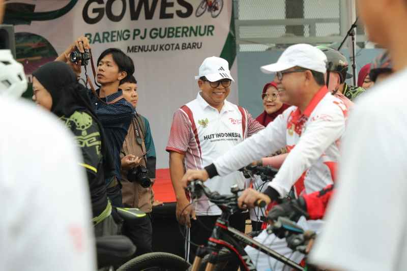 Tak hanya melepas, Pj. Gubernur Samsudin juga turut mengikuti acara Gowes Bareng tersebut.