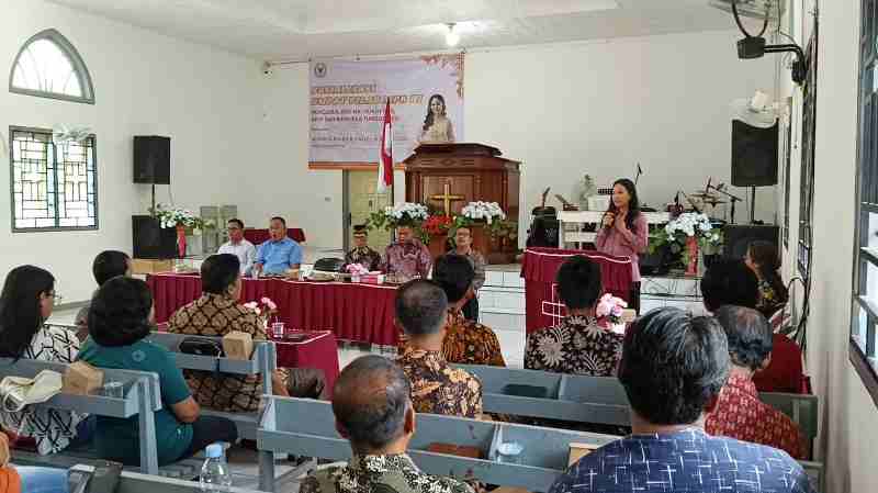 Sumaterapost.co | Lampung – Para Jemaat Gereja Injili Tanah Jawa (GITJ) Tiyuh Kartaraharja Pulung Kencana Kecamatan Tulang Bawang Udik Kabupaten Tulang Bawang Mendapatkan Sosialisasi 4 (Empat) Pilar MPR RI oleh Anggota MPR RI Almira Nabila Fauzi.B.Bus.Com di Aula Gereja GITJ setempat.