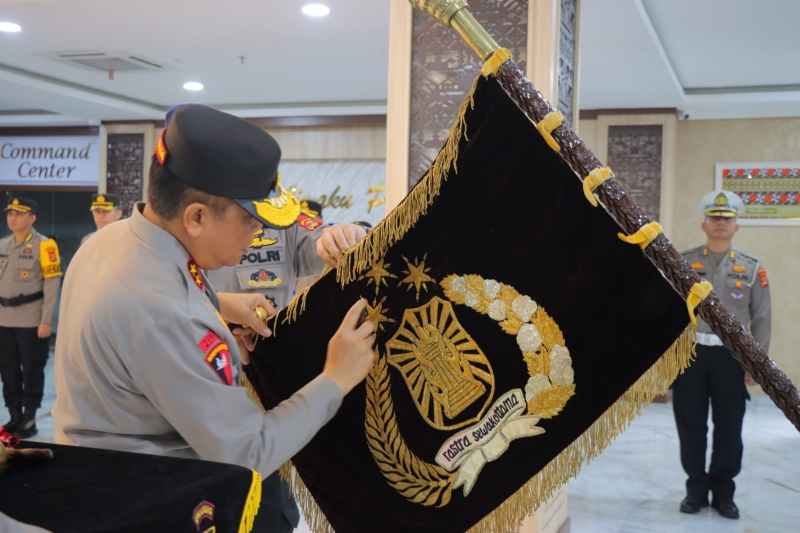 Lampung Selatan – Kapolda Lampung Irjen Pol Helmy Santika S.H.,S.I.k.,M.Si., memimpin Upacara Pemuliaan Nilai-nilai Tri Brata dalam Rangka Pembinaan Tradisi Hari Bhayangkara yang ke-78 tahun 2024. bertempat di Siger Lounge Polda Lampung, Rabu 19/6/24.