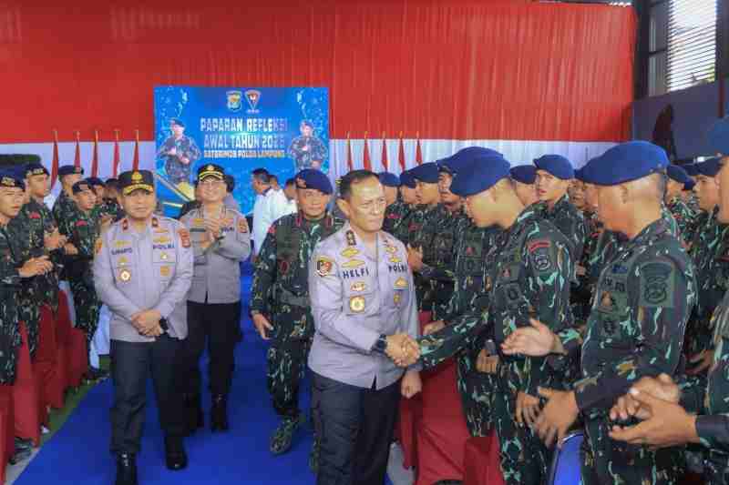 LAMPUNG – Kapolda Lampung Irjen Pol. Helfi Assegaf pimpin sekaligus membuka kegiatan Refleksi Awal Tahun 2026 Satuan Brimob Polda Lampung yang digelar di Makosat Brimob Polda Lampung pada Rabu (21/1/2026).