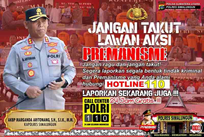 “Kami ingin menekankan kepada seluruh warga Simalungun bahwa tidak perlu ada rasa takut untuk melaporkan tindakan kriminal atau premanisme. Layanan Call Center 110 tersedia 24 jam sehari dan siap melayani laporan masyarakat dari seluruh pelosok Kabupaten Simalungun.