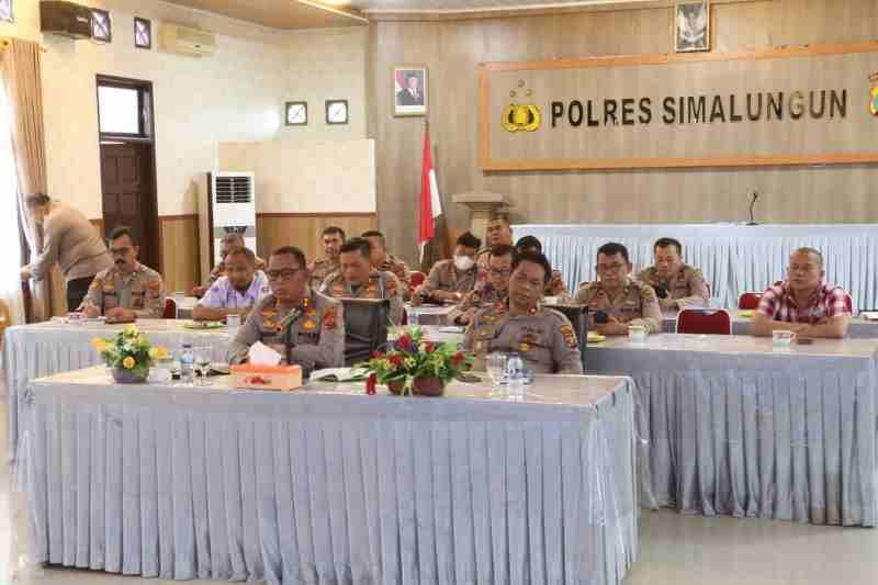 Sumaterapost.co – Simalungun | Kapolres Simalungun AKBP Marganda Aritonang, S.H., S.I.K., M.M., mengikuti arahan langsung dari Kapolri Jenderal Polisi Drs. Listyo Sigit Prabowo, M.Si., terkait perkembangan situasi keamanan dan ketertiban masyarakat (Kamtibmas) pasca pelaksanaan Operasi Ketupat 2025. Kegiatan ini diselenggarakan secara virtual pada Jumat, 11 April 2025, di Aula Andar Siahaan, Markas Komando Polres Simalungun.
