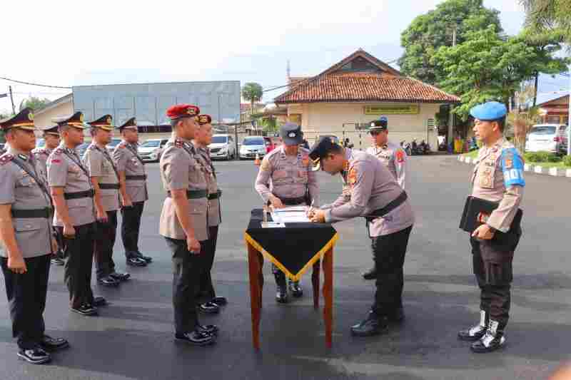Bandar Lampung – Kapolresta Bandar Lampung, Kombes Pol Alfret Jacob Tilukay, S.I.K., M.Si memimpin upacara serah terima jabatan 5 pejabat utama dan 2 Kapolsek di lapangan apel Mapolresta setempat, Sabtu (25/1/2025) pagi.