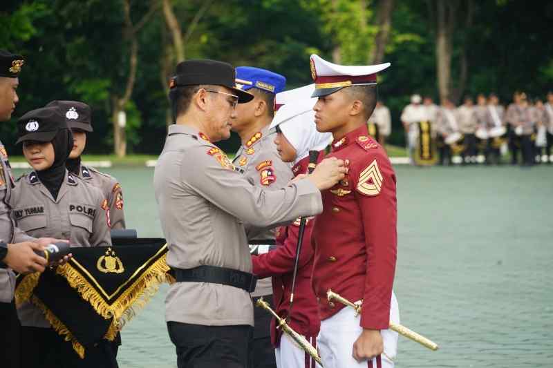 Semarang – Kapolri Jenderal Polisi Drs. Listyo Sigit Prabowo memberikan penghargaan Pin Emas kepada Komandan Resimen Taruna dan Siswa Akademi Kepolisian Kombes Pol Suharjimantoro, S,IK.,M.H. dan beberapa pengasuh serta Taruna Akpol yang berprestasi.