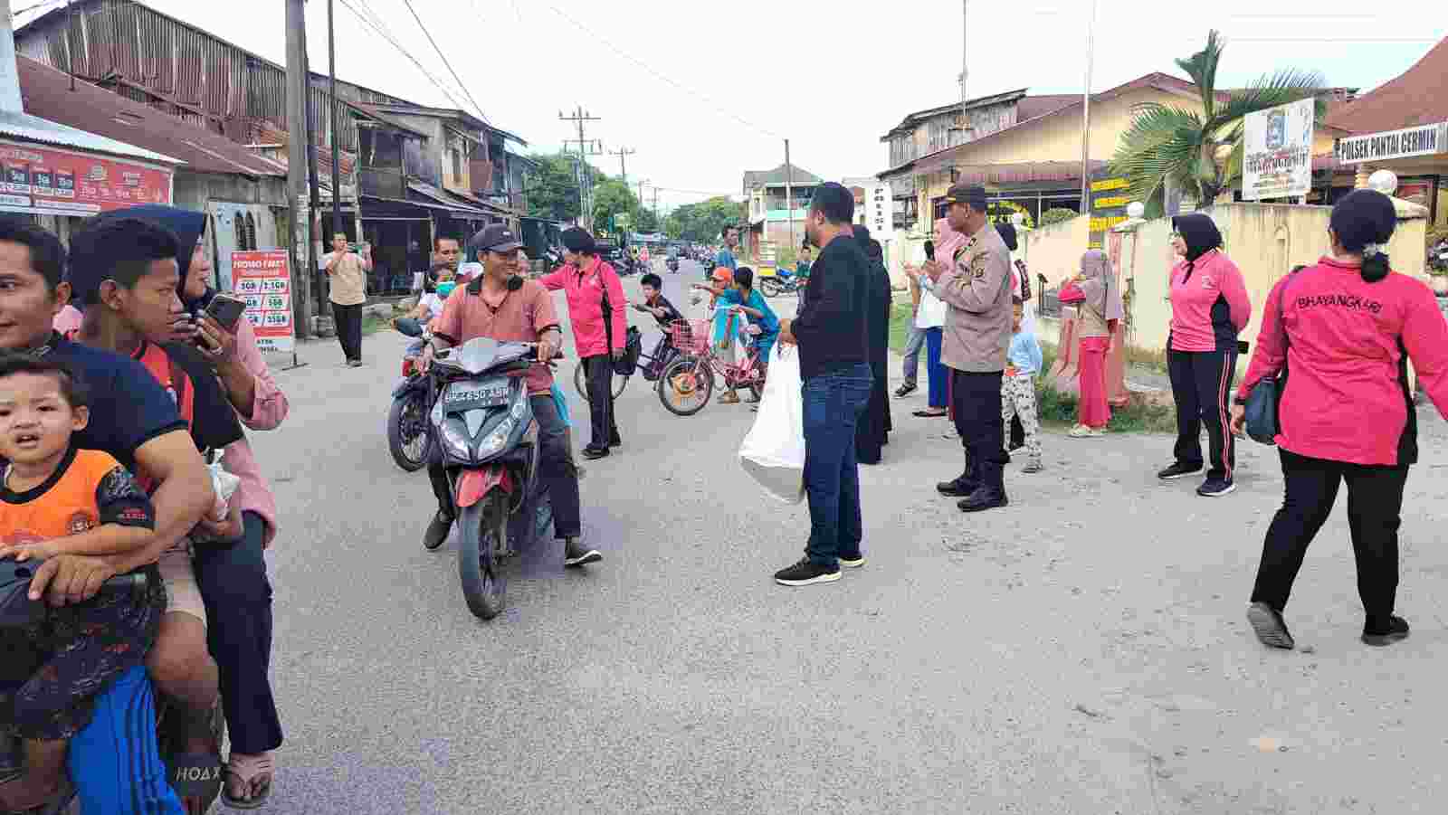 Pembagian Takjil Jalan umum H.T.RIJAL NURDIN di depan mako polsek Pantai Cermin Dusun II Desa Pantai Cermin Kanan Kecamatan Pantai Cermin.